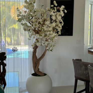 I fiori di ciliegio sono un fiore simbolico della primavera, un tempo di rinnovamento e la natura fugace della vita. Ancorato nel nostro vaso a globo opaco da 24″ che presenta una forma sferica di base, solo con un tocco moderno. La forma completa del globo è il mix per eccellenza di stili tradizionali e contemporanei, poiché i piantatori rotondi completano facilmente qualsiasi spazio intorno a casa, giardino o ufficio. Le sue dimensioni e forma forniscono una tela perfetta per un nostro grande albero di ciliegio bianco. Ogni albero è unico nel suo genere, i fiori sono posti a mano dai nostri esperti artigiani su grandi tronchi di legno di California Mountain Wood. Questo mazzo di elegante ciliegia bianca aggiunge un tocco fresco e elegante a qualsiasi stanza.